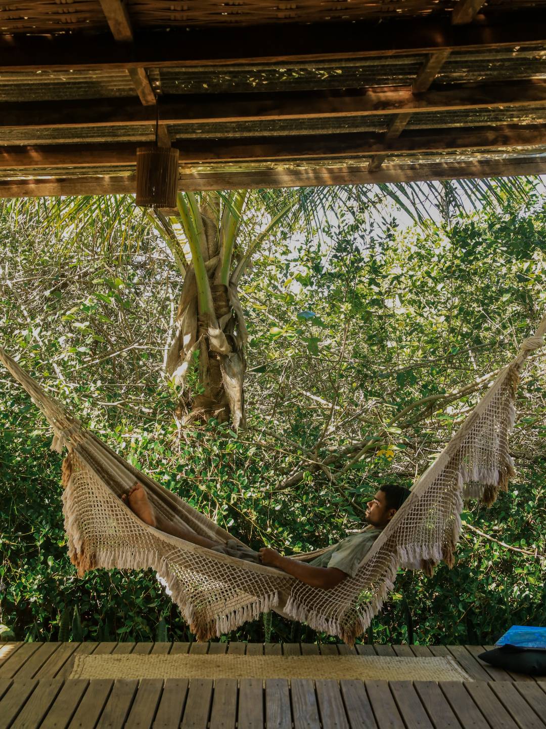 Se precisar, você pode sair da área da ecovila e fumar tabaco no coqueiral ao lado.
